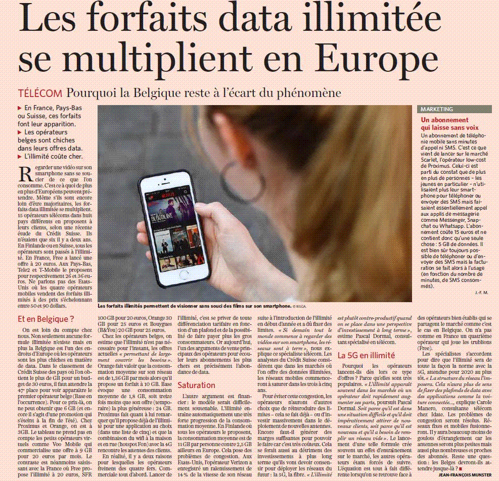 [Article Le Soir] Les forfaits data illimitée se multiplient en Europe