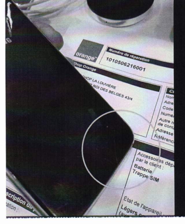 Orange envoie alors des photos du gsm avec une coque complétement fêlée, l'objectif de l'appareil photo abimé et avance donc cet état du téléphone pour justifier que la garantie ne peut intervenir.