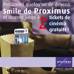Proximus propose une action parrainage aux visiteurs d'Astel.be : les abonnés Proximus qui apportent un nouvel abonné Proximus qui s'abonne via Astel reçoivent 8 places de cinéma Kinepolis.