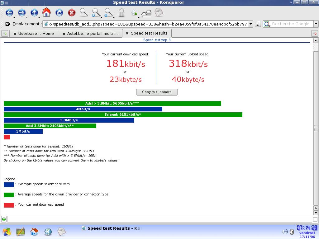 Voilà ce que j'ai pour aujourd'hui chez Mobistar ADSL Talk (et c'est véridique, j'ai eu la preuve en voulant télécharger qqch...)