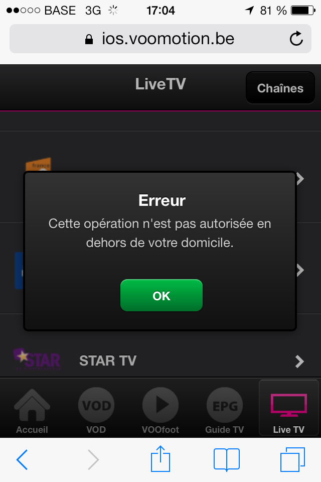 Pas de chance, le service n'est pas disponible en dehors de mon domicile.