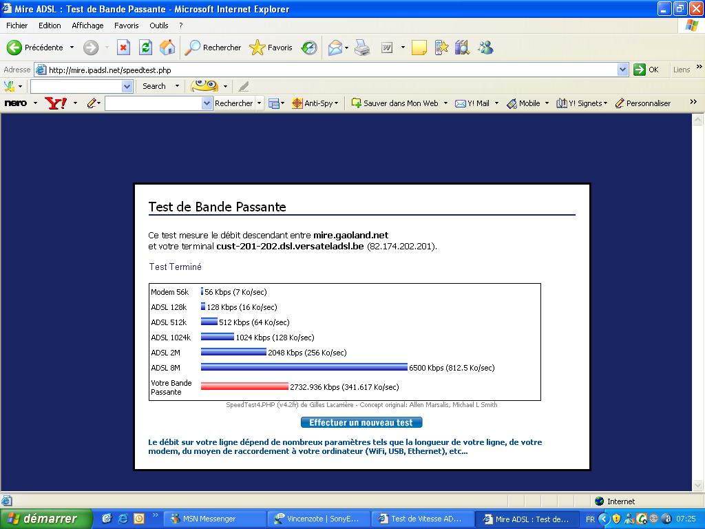 Même parcours, même remarques.Envoyé par Vidocqpar contre ce que je ne comprend pas, je suis passé du 512 K (première offre de Versatel) au 1124 K (1,1 Mg de Versatel) ensuite toujours avec le même modem E-Tech fourni par Versatel passage au 4 Mg., mais sans le téléphone et sans la Box. A ce moment j'ai constaté un vrai 4 Mg. Après installation de la Box toujours pareil, mais quelques jours après la cata plus rien ne fonctionne correctement. La suite est connue de tout le monde.