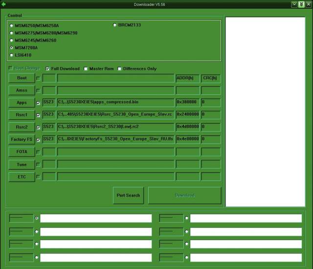 Etape 3 : Sélectionner les bons fichiers du firmware voulu dans Downloader 5.56 exactement les même que sur le screen et cocher bien tte les cases comme sur le screen!!!