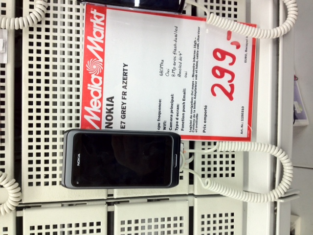 hello les amis voila une bonne nouvelle le nokia E7 est a 299 euros voir folder mediamarkt et saturn je mesuis pris un mmm
