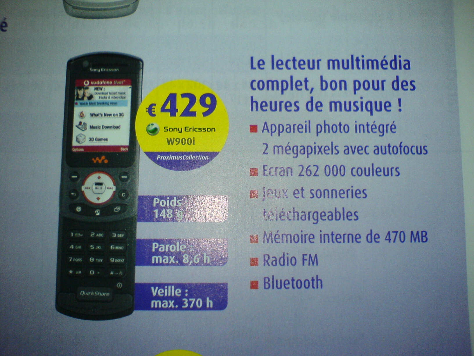 Est-ce que quelqu'un aurait plus d'infos sur la sortie du W900 dans la proximus collection à 430€?