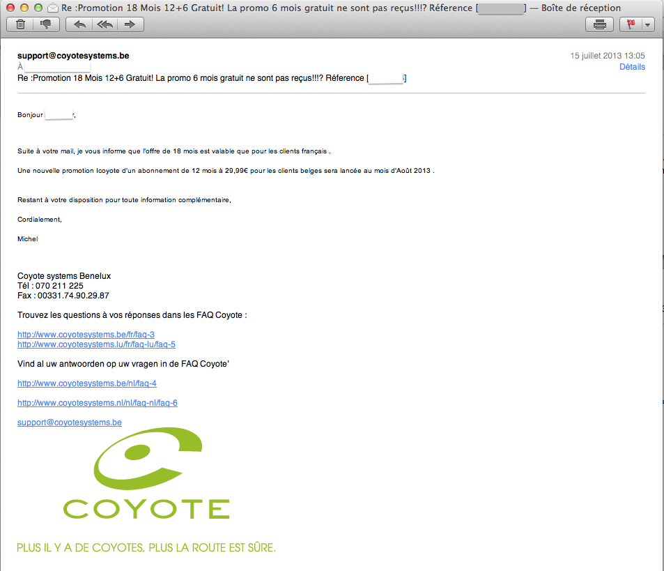 après avoir moi-même acheté l’abonnement je regarde sur mon compte je ne vois que 12 Mois achetés la j’attends fin d’après midi je me dis que peut être, cela doit, s’activer manuellement chez coyote que j’allais recevoir mes 6 Mois après…
