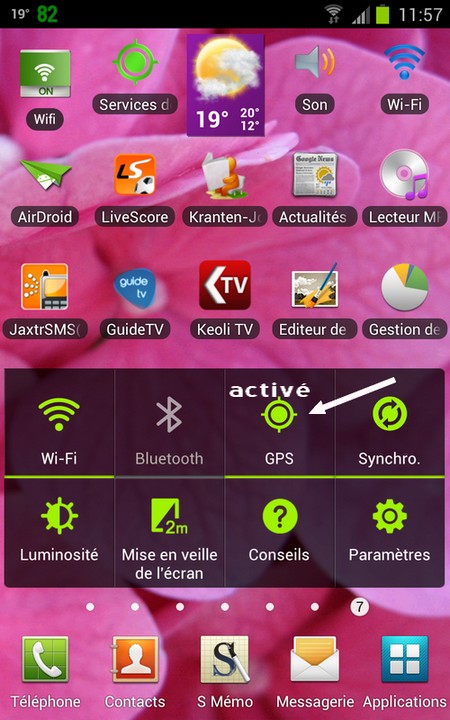 maintenant, que tu le dis..figure toi que donc mon note est tjs allumé..et comme navigon n'allait pas et bien j'ai activé mon gps..rien ne s'est affiché dans la barre du dessus.(mais il est bien en vert fluo et activé dans les paramètres).j'ai lancé "localisation"..et donné un trajet...donc ça me le donnait et j'étais bien sur le flèche bleue, par contre étonnée de ne rien voir au dessus...juste la flèche bleue de localisation..mais toute "grisée"