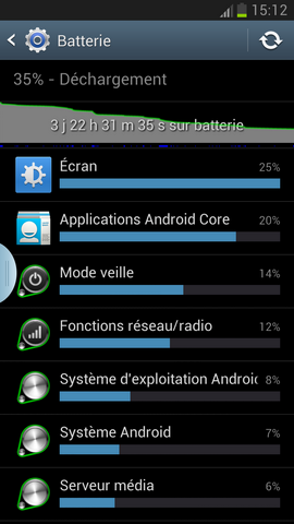 J'ai rechargé la dernière fois mon gsm lundi et j'ai fait quelques appels, beaucoup de wifi, beaucoup de sms, j'ai aussi beaucoup joué avec les photos en les regardant, modifiant, etc... et pourtant il me reste encore 35% de batterie. Je savais que la batterie du Note 2 était magnifique mais là lol.