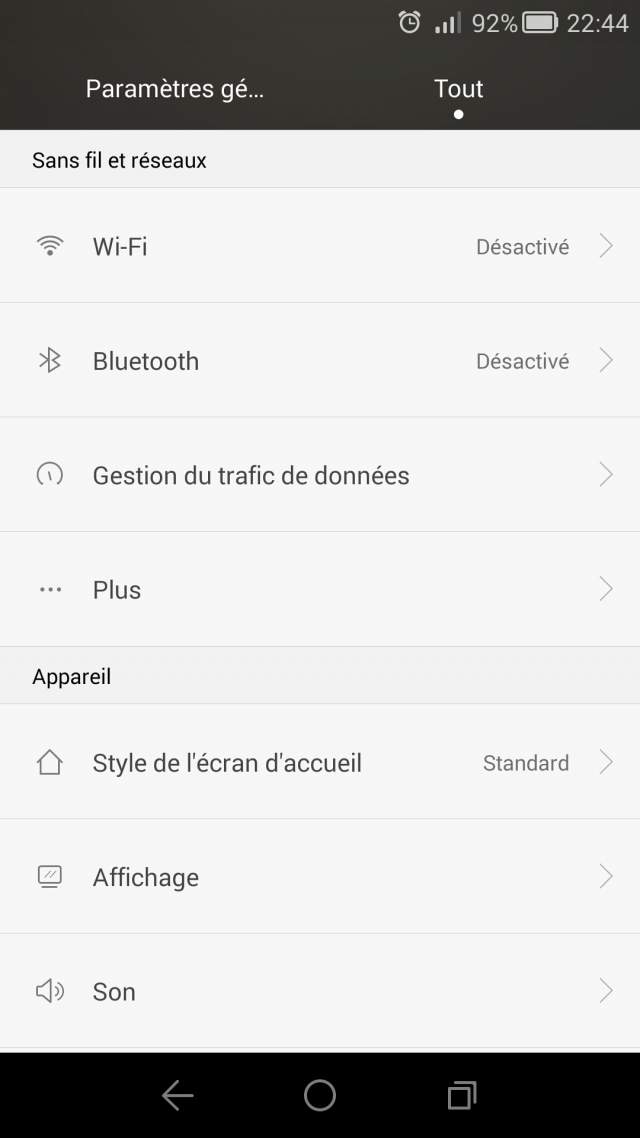Mais qui dit version bêta dit forcément présence de bugs mais qui n'empêchent pas l'utilisation de la surcouche au quotidien. De plus, certains paramètres qui étaient auparavant faciles d'accès ben ne le sont plus tout simplement. Les exemples les plus flagrants étant le choix du launcher par défaut (vous remarquerez l'absence du menu "Accueil" dans le second screenshot en-dessous de "Style de l'écran d'accueil") et l'appli sms par défaut.