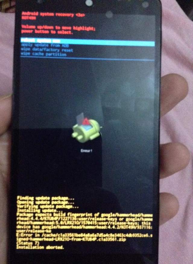 J'ai reçu la maj en OTA mardi soir, j'ai essayé en rentrant chez moi et après le redémarrage j'ai droit à un android suivi d'un "erreur !"