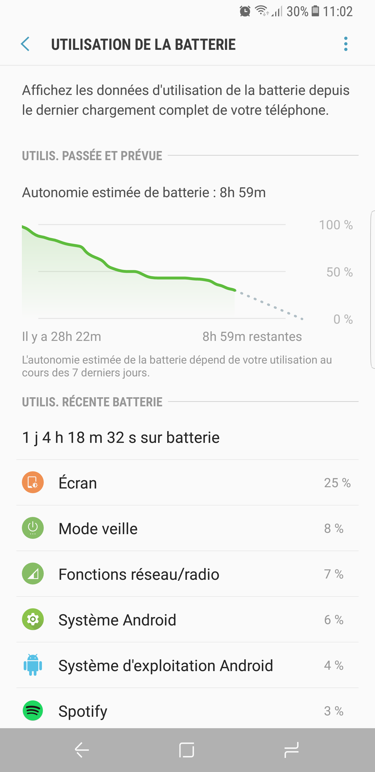 concernant l'autonomie je suis un peu déçu par rapport au S7 edge mais comme la batterie ne fait que 3000mh c'est logique donc.. je tiens tout de même une journée avec au moins une heure GPS par jour donc très très correct.