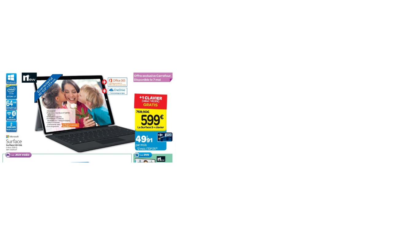 Bonne promo ca s est assez interressantEnvoyé par Shinigami Voir le messagePromo au Carrefour : A l'achat de la Surface 3, le clavier est offert !