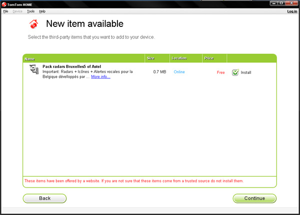 Les radars français ou belges proposés n'ont rien avoir avec ceux installés par Tomtom.