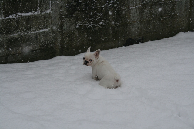 Envoyé par Chrisca Voir le messageUne photo de mon bouledogue français qui, comme on le voit, adore la neige :-)