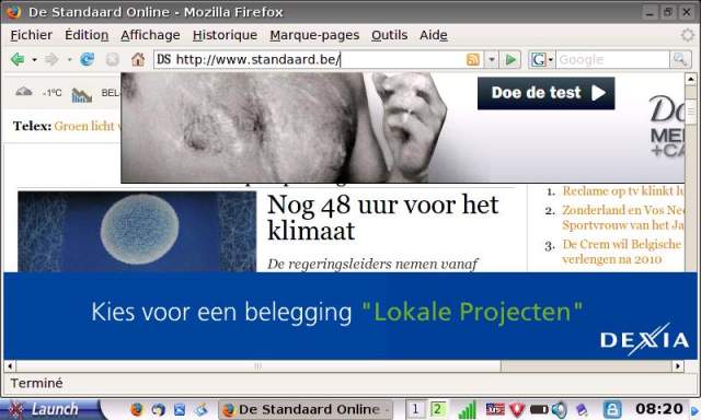 Il m'a déjà fallu fermer un pop-up plein de pub et voilà en pièece-jointe ce que je vois sur ,on écran: une seule entête lisible entres les annonces.
