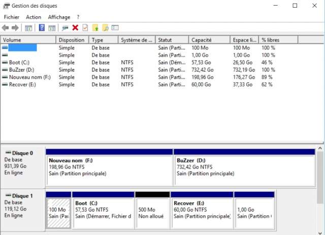 soit lorsque je suis dans poste de travail le 128 ssd est partitioner en 2